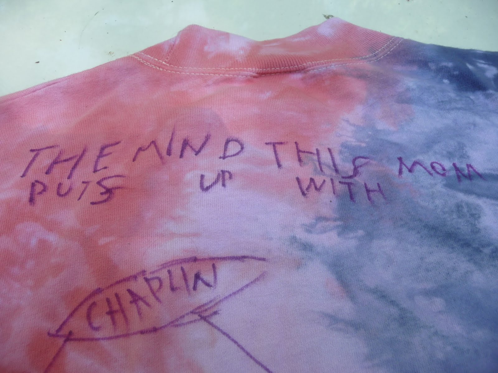 What he did, however, was to take one of my shirts and decorate it with a Sharpie. Here is what he wrote first:
